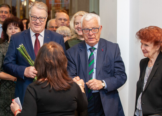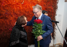 FOTO: Raimonds Pauls sveic māsu Edīti viņas vērienīgās izstādes atklāšanā