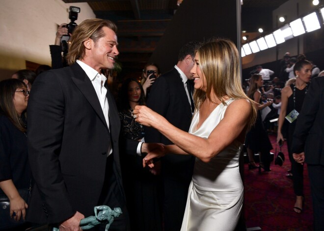 Dženifera Anistone un Breds Pits "SAG-Awards-2020" aizkulisēs.