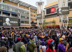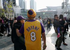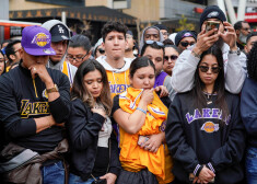 Losandželosā cilvēki sēro par bojāgājušo NBA leģendu Kobi Braientu un viņa 13 gadu veco meitu Džannu