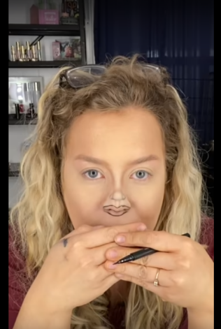 Laikā, kad visā pasaulē cilvēki aizklāj savas sejas ar maskām Covid-19 izplatības dēļ, grima māksliniece Džeimija Frenča nolēmusi demonstrēt daudziem vēl neredzētu meikapu. Viņa rāda, kā lūpas "paceļ" uz deguna, tā radot mazu sejiņu.