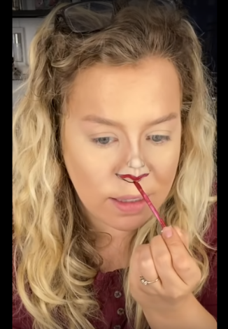 Vai nākotnes meikaps? Grima māksliniece "paceļ" lūpas uz deguna, radot mazu sejiņu