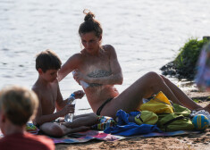 2020. gada karstākā diena : cilvēki veldzējas peldvietās, atpūšas kafejnīcās un slēpjas zem lietussargiem