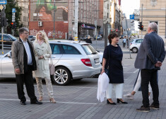 Ļaudis dodas uz Dailes teātra pirmizrādi "Blokmājas Dons Kihots"