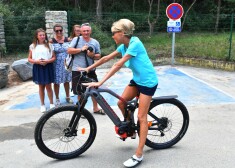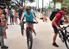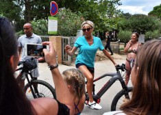Brižita Makrona vizinās ar velosipēdu Franču Rivjērā ļoti īsos šortos
