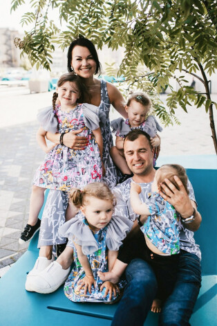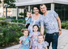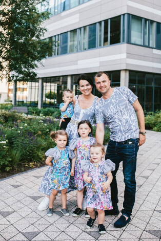 Bērnu apģērbu zīmola “Rock and Mouse” radītāja Ieva Trumpekoja ar ģimeni