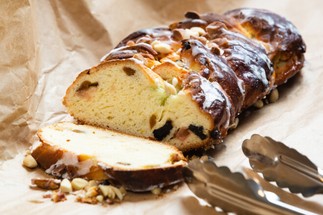 Izkausē sviestu, sajauc ar cukuru, krējumu un olu, pierīvē citrona miziņu, vaniļu, rozīnes, mandeles, safrānu, sāli. Iemaisa miltus un aktivizētu raugu (tam pielej mazliet silta ūdens un cukuru un miltus). Ļauj mīklai uzrūgt apmēram stundu, kārto uz cepešpannas formā, kādu vēlas (var arī vienkārši klaipiņa formā), dekorē ar mandelēm un cep, kamēr gatavs, 180 grādos.