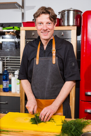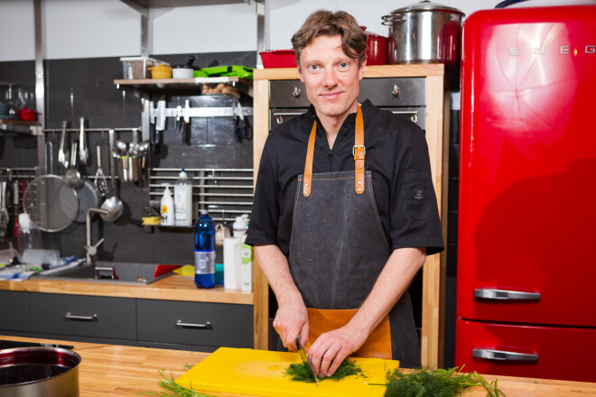 Dāvis Auškāps atklāj receptes ar savām bērnības garšām: safrāna kliņģeris, melleņu klimpas un aknas sīpolos