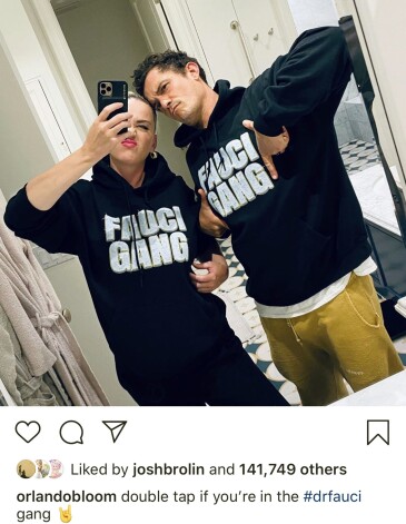 Mūziķe Keitija Perija atrodas izolācijā ar saderināto, aktieri Orlando Blūmu. „Es un šis laiks ir pārbaudījums. Lai Dievs svētī – viņš aizvien ir ar mani. Viņš ir ļoti iejūtīgs un apzinās, ka tā nav tikai karantīna, bet arī mans grūtniecības laiks,” izteikusies Perija. Un, pateicoties tam, ka Orlando vairākas stundas dienā pavada izbraucienos ar velosipēdu, Keitjai ir arī laiks un telpa pašai sev.