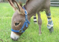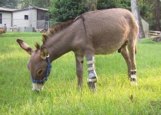 Avārijā kāju zaudējis vīrietis uzkonstruē protēzi ēzelītim, kam kājas nav kopš dzimšanas