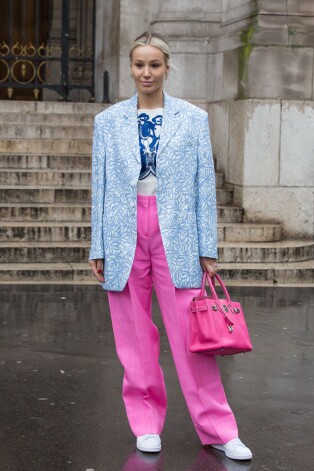 Zilā un rozā krāsa papildina viena otru kā pasteļtoņu, tā arī spilgtākos komplektos (un abus samiksējot kopā) un atgādina vienlaikus par svaigumu un dzestrumu.