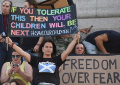 Šemirani uzrunā ļaudis Trafalgaras laukumā