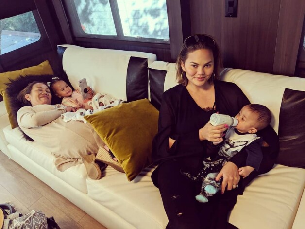 Kad Teigenas vīrs mūziķis Džons Ledžends Instagram publicēja šķietami nevainīgu fotogrāfiju, kurā modele šova The Voice aizkulisēs redzama, barojot dēlu Mailzu, interneta mammas sadusmojās un jautāja, vai bērns vairs netiek barots ar mātes pienu.
