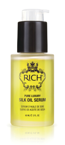 Rich Pure Luxury Silk eļļas serums. Sastāvā esošais jojoba, mandeļu un olīvu eļļas maisījums nogludina un mitrina matus. Ātri iesūcas matos, vienlaikus nodrošinot termo aizsardzību. Maksā 15,99 EUR.