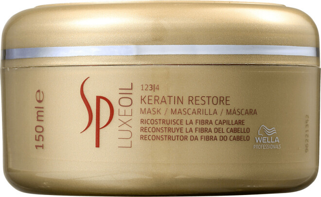 Wella System Professional Luxe Oil keratīnu atjaunojoša maska. Bagātināta ar izmeklētām eļļām, kas padara matus mīkstus, atjauno matu šķiedru, uzlabo matu struktūru. Maksā 35,49 EUR.