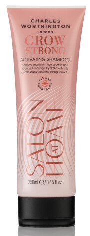 Charles Worthington Grow Strong šampūns. Satur zirņu asnus, kas aktivizē mata folikulu, kā arī aizsargājošu, barojošu olbaltumvielu maisījumu, kas nodrošina veselīgus apstākļus galvas ādai un matu augšanai. Maksā 9,99 EUR.