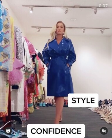 Popzvaigzne Keitija Perija vietnē “TikTok” publiskojusi pikantu un humorīgu video. Viņa tajā redzama zilā PVC mētelītī. Dziedātāja tajā soļo pa savu plašo istabu garderobi, bet, kad pienākusi pavisam tuvu kamerai, paver mētelīti un visiem atklāj, ka zem tā ir miesas krāsas “Spanx” koriģējošās biksītes. Perija savu vēstījumu par figūras uzturēšanas “palīgiem” atrādījusi arī bilžu sērijā “Instagram”.
