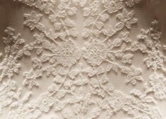 Hercogienes Ketrīnas kāzu kleitai bija ziloņkaula krāsas satīna korestes augšdaļa ar mežģīnēm un garām ziedu raksta mežģīņu piedurknēm.