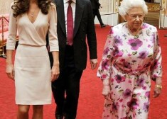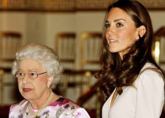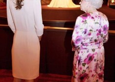 Ketrīna kopā ar karalieni Elizabeti II aplūko ekspozīciju
