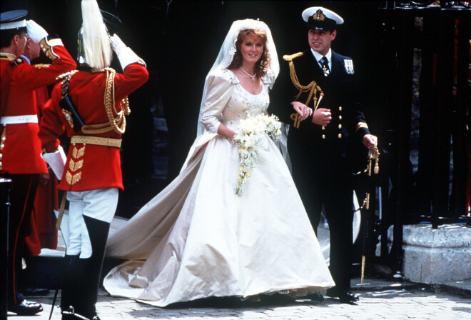 Sāra Fērgusone ar princi Endrū salaulājās 1986. gada jūlijā Vestminsteras abatijā un pēc kāzām ieguva Jorkas hercogienes titulu.