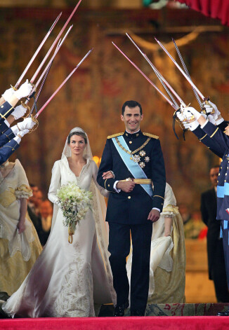 Nākamā karaliene Letīcija savu tēlu bija papildinājusi ar briljantiem rotātu diadēmu, kuru viņai uz kāzām uzdāvinājusi vīramāte. Karaliene Sofija ar šo kroni bija rotājusies savā kāzu dienā ar karali Huanu Karlosu 1962. gadā.