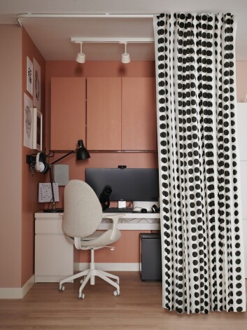“Viens no vienkāršākajiem veidiem, kā atdalīt darba vietu no pārējās telpas, ir izmantot aizslietņus. Tie sadala telpu līdzīgi sienai un rada sajūtu par privātu telpu. Šāds risinājums lieti noder, ja nepieciešams neitrāls fons video zvaniem, bet telpā uzturas vēl citi mājinieki vai atrodas personīgās mantas, kuras nevēlies rādīt citiem,” Rimkus iesaka.