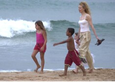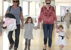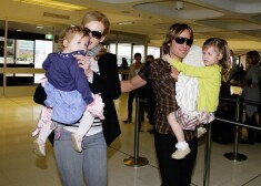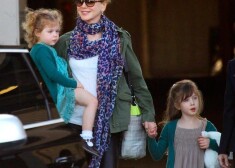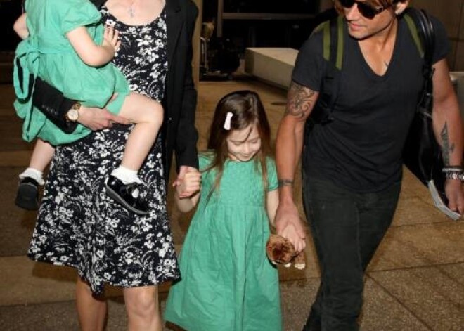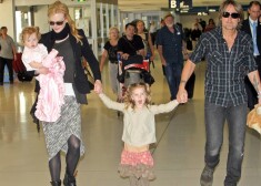Austrāliešu aktrise Nikola Kidmena ar meitām Sandeju un Feitu.