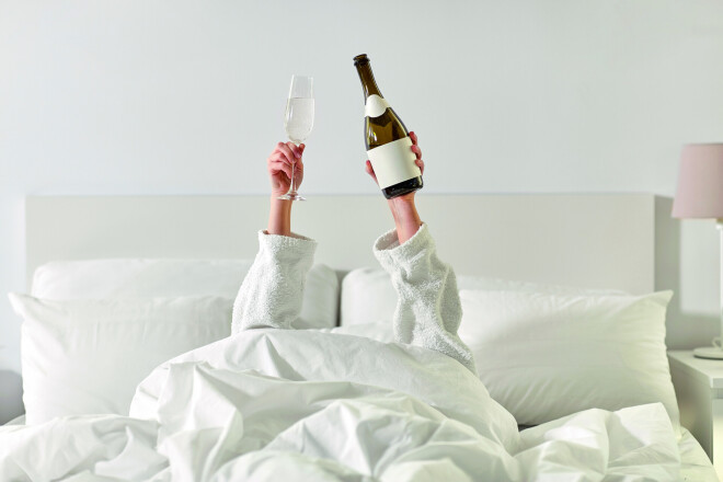 * Glāze (vai divas) sarkanvīna pirms gulētiešanas. Glāze pirms miega varētu šķist labs veids, kā atslābināties, tomēr alkohols nomierinoši iedarbojas tikai sākumā, galu galā sabotējot miega ritmu. Alkohols izraisa atsitiena efektu ar pēkšņu adrenalīna uzplūdu, kad tiek pārstrādāts. Tāpēc nereti cilvēki pamostas naktī, trīs līdz piecas stundas pēc alkohola dzeršanas. Ja tā notiek un no tā cieš miegs, vainīgais ir zināms!