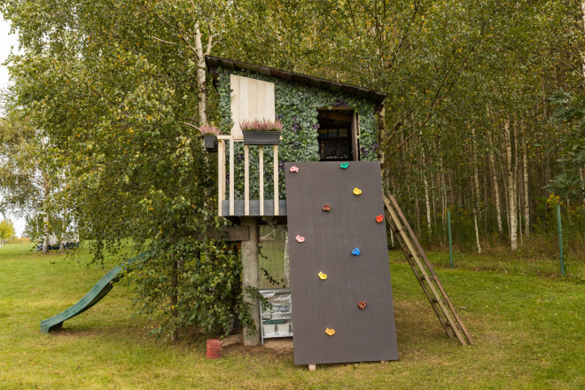 Neparastas pārvērtības: interjera dizainere ģimenei Tīnūžos iekārto namiņu kokā