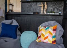 Pirms pārvērtībām namiņa saimnieki – abi ģimenē augošie puiši – sacīja, ka vēlētos tur redzēt drīzāk tumšus toņus un ka noderētu galdiņš, sēžammēbeles un apgaismojums. "Viss ir izdarāms," Renāte ir apņēmības pilna, "tikai jāpatur prātā, ka visiem risinājumiem ir jābūt piemērotiem lietošanai ārā un mitrās vietās. Apgaismojumam ir lieliskas lampas, kas darbojas ar saules baterijām, sevišķi tādās vietās kā šis namiņš, kur nav pieejams elektrības pieslēgums. Šādas lampas ar baterijām var iekarināt koka zaros, stiprināt pie mājiņas vai citur, kur vien vajadzīgs."