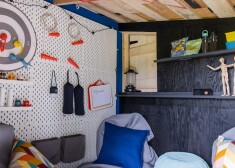 Lai arī namiņš ir ļoti kompakts, bērni to ir iemīļojuši. Namiņš kalpo ģimenei jau vairākus gadus un ir godam pelnījis pārvērtības. Lai nelielo platību izmantotu optimāli, dizainere to vispirms pārplānoja, atsakoties no nevajadzīgām durvīm, lai izmantotu vairāk vietas pie sienām un uz grīdas. Lai mazinātu sliktu laikapstākļu atstāto iespaidu, logiem tika pielikti slēģi. Tā kā telpas platība ir nieka četri kvadrātmetri, dizainere izvēlējās veidot atpūtas zonas arī ārpusē – zem namiņa un mazliet attālāk zālienā.