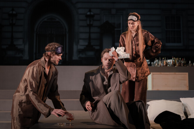 Tur mēs esam divi pāri. Juristi, advokāti, prokurori. Pārtikuši, turīgi karjeristi. Un mēs īsi neesam laimīgi. Tas ir stāsts par attiecībām. Par uzticību, par krāpšanu un pievilšanu. Par izrādēm ir tik grūti stāstīt. Tas visu padara tik triviālu...