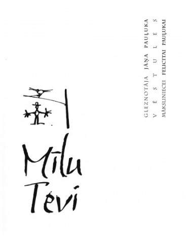 Mīlu tevi. Gleznotāja Jāņa Pauļuka vēstules māksliniecei Felicitai Pauļukai. Lasot gleznotāja vēstules savai sievai un dzīves lielākajai mūzai Felicitai Pauļukai, top skaidrs, ka Jānis Pauļuks neglezno tikai gleznas, mākslinieks glezno arī vārdus un teikumus. Šīs vēstules liek arī domāt par to, kā mēs komunicējam viens ar otru. Kā un ko mēs otram stāstām. Kā izvēlamies vārdus. Vai tam vispār ir nozīme. Otrs šajās vēstulēs ir pieņemšana. Mākslinieki nereti nav “glītas” personības mūsu vērtību izpratnē. Ko piedot māksliniekam mākslas un ģenialitātes vārdā?