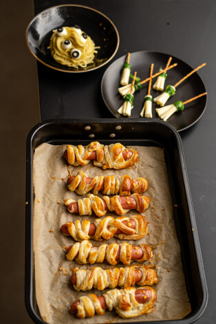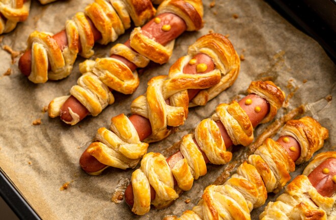 “Halovīnā populāra tēma ir “nedzīvie” ēdieni. Piemēram, cepumi, kam piešķirta pirkstu forma un galā naga vietā ielikta mandele. Vienkārši ir pagatavot arī smieklīgas mūmijas – to var izdarīt, mīklas strēmeles aptinot, piemēram, ap cīsiņu vai pildītas paprikas pusīti,” stāsta Klāvs.