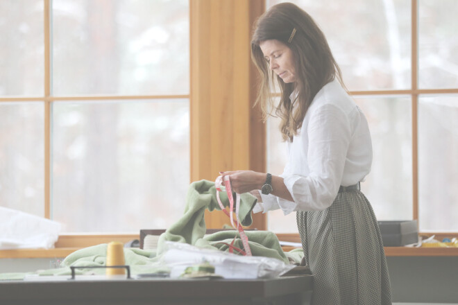 – Jau bērnībā šuvu, tagad atsāku. Nāks draudzene, palīdzēs piegriezt, un abas uzšūsim man garu salātzaļu mēteli. Vienā istabā man ir šujmašīna, ar draudzenēm šujam kleitas – tās garās, plandošās. Gribēju lina blūzi – un uzšuvu. Man to vajag – tikt vaļā no intensīvās rakstīšanas. Izklāju audumu, sajūtu, vīlītes smuki nogludinu, iztēlojos, kā būs… Esmu diezgan hipijisks cilvēks, redz, baikera zābakos staigāju. Man patīk brīvība un tāda mistiska seksualitāte. Ne īsi svārki – te es esmu! Tie, kam vajadzēs, redzēs. Man nav nevienam ar sevi jāuzbāžas.