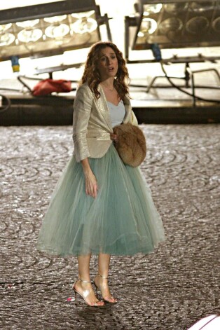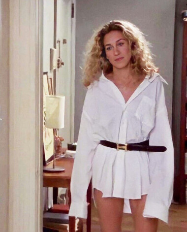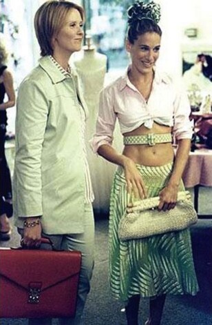 Modele Emīlija Ratajkovski nav miniatūro krekliņu pioniere, viņa ir tikai sekotāja, jo jau vairāk nekā pirms desmit gadiem Kerijas arsenālā tie bija visdažādākajās krāsās un siluetos. Pat ar garām piedurknēm, ko valkāt ar svītrainiem Prada svārkiem no 2001. gada pavasara/vasaras kolekcijas un Gucci jostas somu. Viens no seksīgākajiem Kerijas tērpiem, pat ja šajā epizidē Eidens to nenovērtēja, jo bija pārāk aizņemts, flirtējot ar bārmeni.