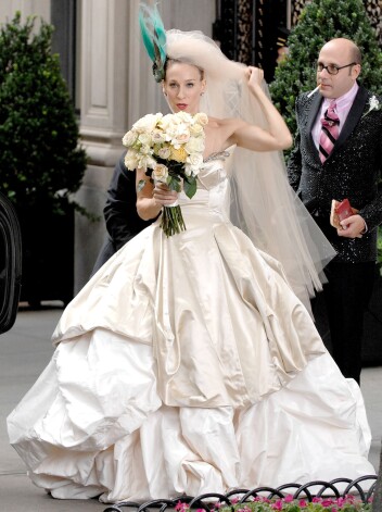 Kerijas neveiksmīgajai kāzu dienai ir viens pozitīvs aspekts – krāšņā Vivienne Westwood kleita. Un putniņš matos. “Tas bija tik skaists! Saprotu, ka kādu tas var aizvainot, par to atvainojos, bet rota ir tapusi sen – pirms manas piedzimšanas. Producents bija šokā, bet viņa nebija klāt, lai pateiktu “nē”. Tikai nomurmināja: “Okei, tev galvā būs putns!” Diemžēl tērpu īres uzņēmums neļāva man to iegādāties. Prasīju, lai nosauc cenu, bet viņi to nepārdeva. Vēl aizvien par putnu uztraucos, nedomāju, ka kāds spēs par to parūpēties tik labi, kā to darīju es,” prāto aktrise Sāra Džesika Pārkere.