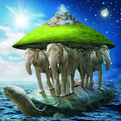 Seno ķīniešu kosmoloģija pauda, ka debesis savu ķermeni ieguvušas no Jan, tāpēc tās ir apaļas un kustīgas, bet Zeme savu ķermeni ņēmusi no Iņ, tāpēc tā ir plakana un mierīga. Savukārt seno indiešu priekšstats par Zemi bija izdaiļots ar mītiskajiem dzīvniekiem, proti, Zemes ripa turējās uz pasaules ziloņiem, kas savukārt stāvēja uz kosmiskā bruņurupuča. Islāma kosmogrāfijā šī piramīda ir vēl sarežģītāka: kosmiskais vērsis nes uz muguras eņģeli, uz kura pleciem atrodas Zeme, un klinšu platformu, uz kuras eņģelis stāv. Tiek teikts, ka vērsis stāv uz milzu zivs vai vaļa un ka šim vērsim ir 40 000 ragu un kāju vai tikpat daudz acu, ausu, mutes un mēļu.