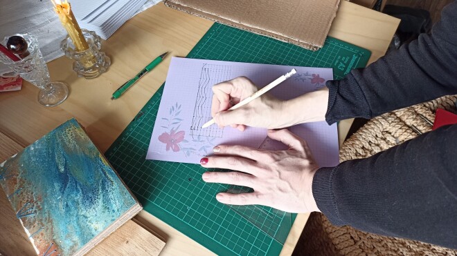 Es izmantoju klasiskās tehnikas, ko esmu apguvusi 100% pašmācības ceļā, jo man tās neviens nav mācījis. Es sapratu, ka man tomēr patīk mākslinieciskā puse piezīmju grāmatiņu veidošanā, jo tas ļauj vairāk izpausties. Nav jāievēro noteikti kanoni, likumi un defektu var ātri pārveidot par efektu.