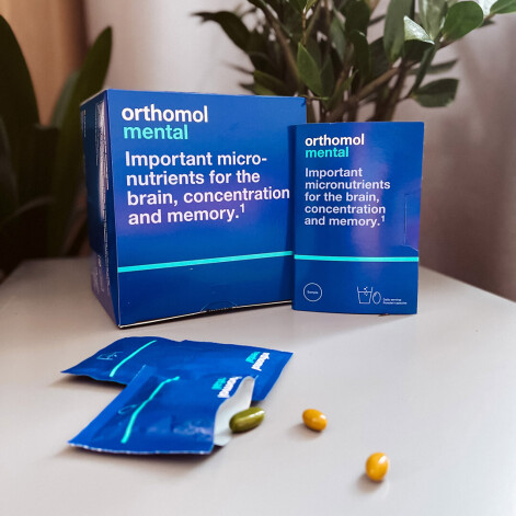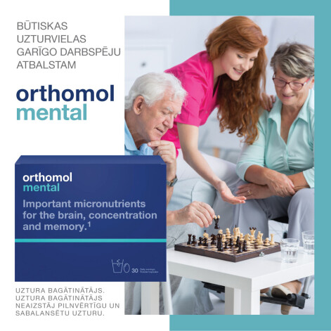 Nepieciešamais ikdienas uzturvielu daudzums dažādos dzīves posmos atšķirīgs. Par to, lai īstajā brīdī būtu pieejams īstais uzturvielu komplekss, parūpējies uzturvielu ražotājs Orthomol (Vācija), izveidojot īpašu uzturvielu kombināciju garīgo darbspēju atbalstam - Orthomol Mental. Orthomol Mental ir zinātniski pamatota un ortomolekulārajā medicīnā balstīta uzturvielu kombinācija smadzeņu darbībai, koncentrēšanās un atmiņas spējām. Īpaši sabalansētās un bagātīgās uzturvielu devas spēj nodrošināt mūsu smadzeņu šūnas ar visām tām nepieciešamajām uzturvielām - vitamīniem, mikroelementiem, šūnu membrānām būtiskajiem fosfolipīdiem, divdaivu ginka un zaļās tējas ekstraktu, resferatrolu saturošu vīnogu ekstraktu, omega-3 taukskābēm, koenzīmu Q10, L-karnitīnu.