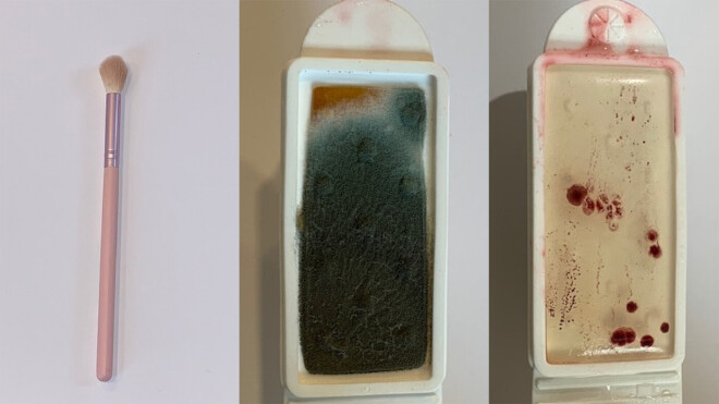 Atbaidoši pretīgas fotogrāfijas parāda, cik mikrobu un pelējuma pilni, patiesībā ir meikapa piederumi