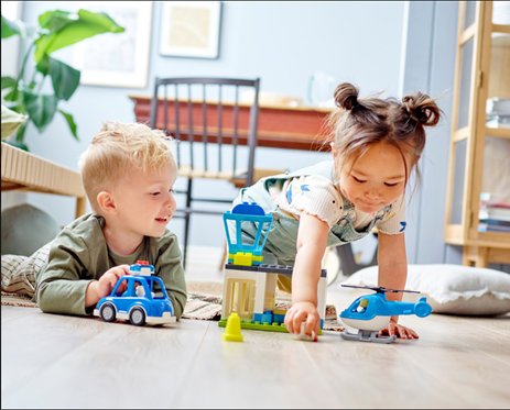 Ne velti saka, ka bērni ir mūsu spogulis, jo savās rotaļās tie atdarina pieaugušo ikdienu – vai tā būtu ēdiena gatavošana vai darba ikdienas atspoguļošana. Un tieši ar šāda veida rotaļām bērni attīsta savu iztēli un izdomu. Izdomas pilnas rotaļas ir ne tikai jautra laika pavadīšana, bet tām piemīt arī vairākas attīstošas īpašības. Proti, šāda veida rotaļas attīsta bērna radošumu un spēju pielāgoties un rast risinājumus nestandarta situācijās, mudina sociālo un emocionālo attīstību, veicina valodas un komunikācijas prasmes. Tāpat šāda veida rotaļas attīsta domāšanas, mācīšanas un problēmrisināšanas spējas, kā arī veicina smalkās motorikas attīstību. Ar “LEGO DUPLO” sērijas komplektu Policijas iecirknis (Police Station & Helicopter) bērni iepazīs iztēles pilnas rotaļas. Sērijas komplektā ietilpst policijas iecirknis, helikopters, ripināms policijas auto, kā arī divi policisti un policijas suns. Turklāt Policijas iecirkni iespējams savienot ar citiem “LEGO DUPLO” komplektiem, lai rotaļas padarītu vēl aizraujošākas!