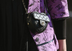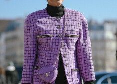Ja baidies, ka violetā krāsa nav tava, vari izvēlēties tikai šīs krāsas aksesuārus, piemēram, somu, maku vai apavus, vai apsiet violetu lakatiņu ap rokassomas lenci.