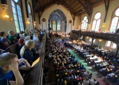 "Vasarsvētkos mēs svinam tādu kā sapni, kā nākotnes melnrakstu. Ka cilvēki var sastapties, var saprasties, un, ja pa īstam tas notiktu, tad pasaulē nebūtu to notikumu, kas ir pašlaik," stāstīja Rīgas Lutera draudzes mācītājs Linards Rozentāls.