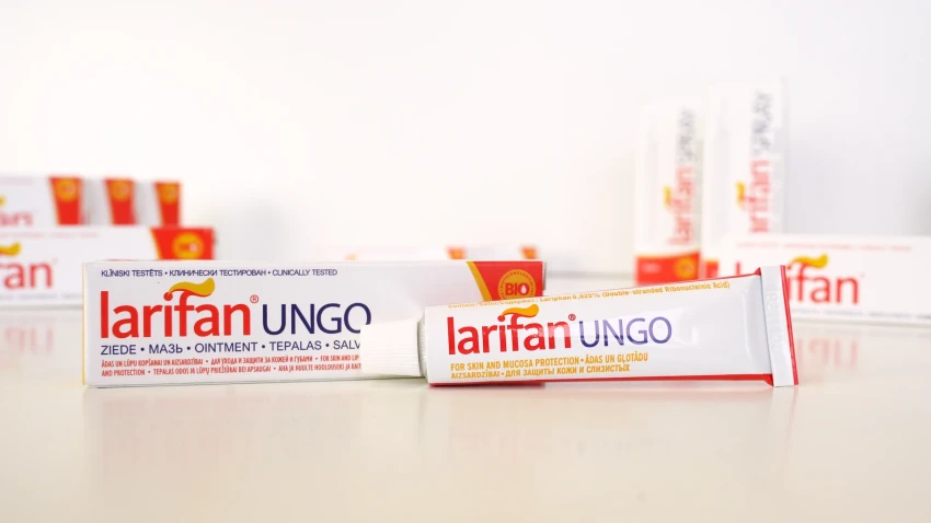 Ziedes Larifan Ungo sastāvā iekļauts patentēts dabiskas izcelsmes komponents dsRNA Larifan, kas piešķir ziedei papildus vērtību. dsRNA Larifan paaugstina organisma lokālo pretestību pret nevēlamu apkārtējās vides faktoru iedarbību, tostarp pret vīrusu nokļūšanu organismā. Tāpēc vēlams to lietot dažas dienas pirms kosmētiskās tetovēšanas procedūras un arī trīs četras dienas pēc tās.