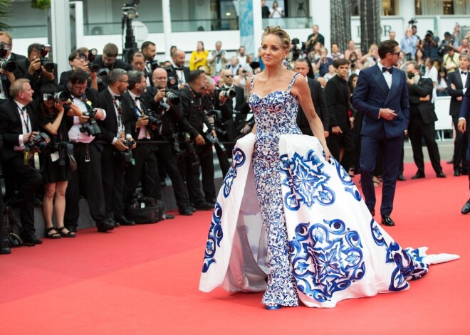 Šāronas Stounas pārvērtības ar kleitu Kannu kinofestivālā