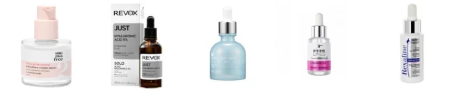 - Produkti ir pieejami dažādiem ādas tipiem. Uz ūdens vai želejas bāzes veidoti hialuronskābi saturoši produkti ir piemērotāki taukainai ādai, taču uz eļļas bāzes ražoti produkti – sausai ādai.