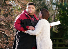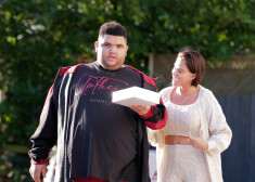 Keitija Praisa ar dēlu Hārviju apmeklē omīti Eimiju, ievērojot noteikto 2m distanci