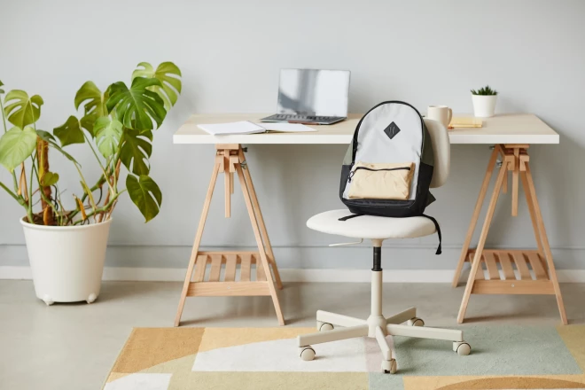 * Izvēlies rakstāmgaldu ar gaišu virsmu. Ja vēlies, košumu vari piešķirt ar spilgtas krāsas galda malām, kājām vai neparastiem rokturiem.