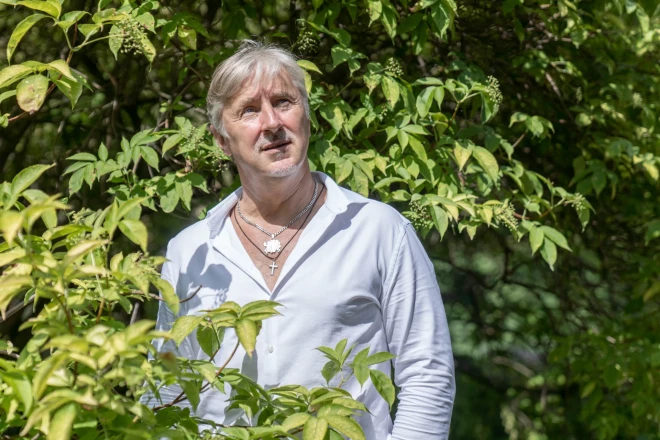 Zvirgzde. Uz Jāņiem bija sabraukuši Jurģa un Robina draugi – kā pa jūru plunčājās. Man vispār patīk no drēbēm atbrīvoties. Dzīvoju tādā kā meža kabatā, kad lietus stipri līst, es noģērbjos pliks un staigāju, kaifoju par ūdeni. Neesmu nūdists, bet jūtu, ka tā es enerģiju uzņemu. Tagad arī saulītē kreklu novilku, jo man tā ir forši. Tā nav poza vai mānija…