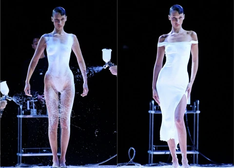 Pēc tam, kad pandēmijas gadi izjauca visus prezentācijas šovu plānus, zīmola Anrealage dizainers esot vēlējies dubultot efektivitāti - tas ir katru tērpu parādīt divreiz. Un to viņš darīja pirmo reizi rādot tērpu no labās, pēc tam kreisās, apdares puses.